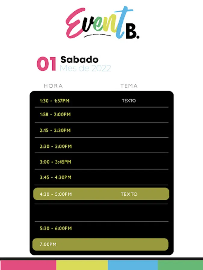 • Find out about the schedule of the event, places and talks that it has for you.
