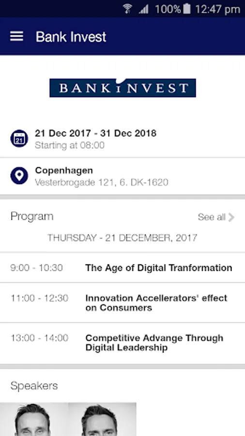 Download den officielle BankInvest app til seminarer og arrangementer.