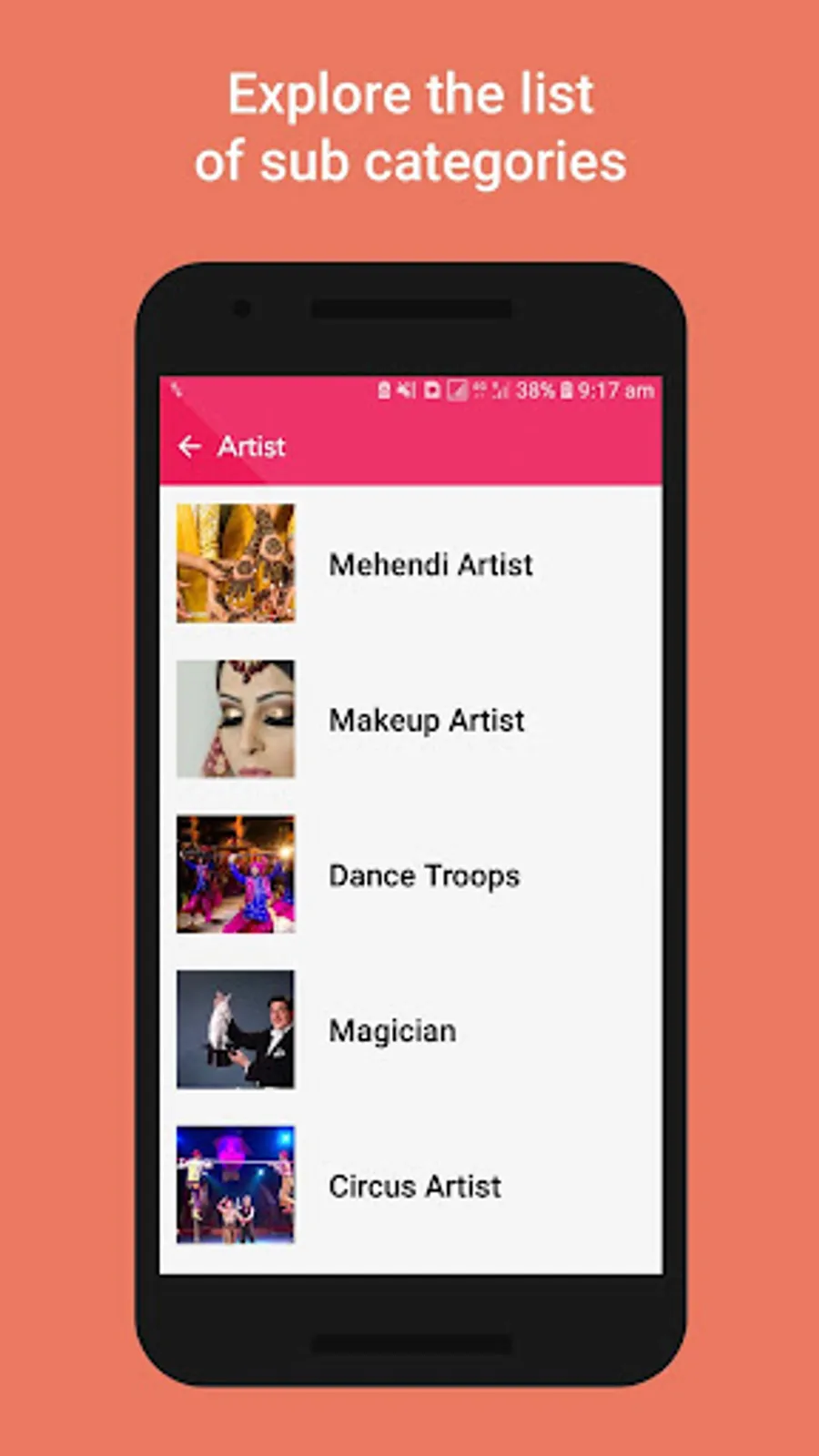Various Artists: Mahendi Artists, Makeup Artists, Dance Troops, Magicians, Comedians, Circus Artists.