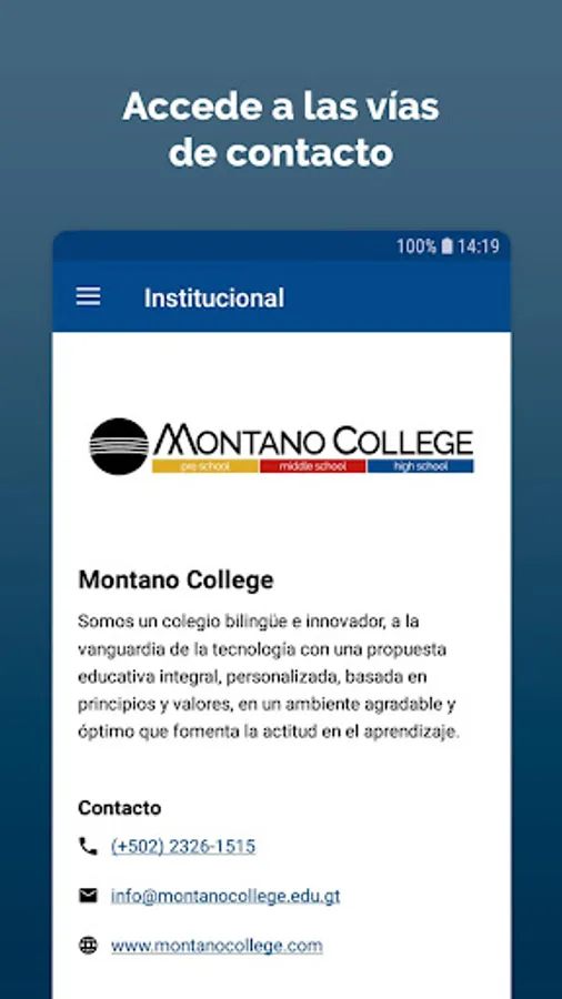 This app is a tool that allows you to be connected with the activity of Montano College.