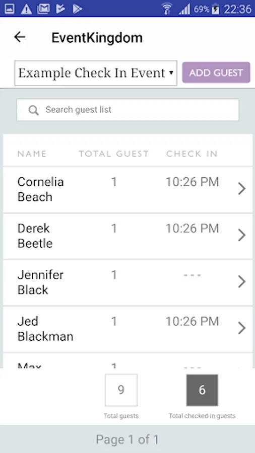 View stats and infos such as seating, VIP status etc, which was added for each guest.