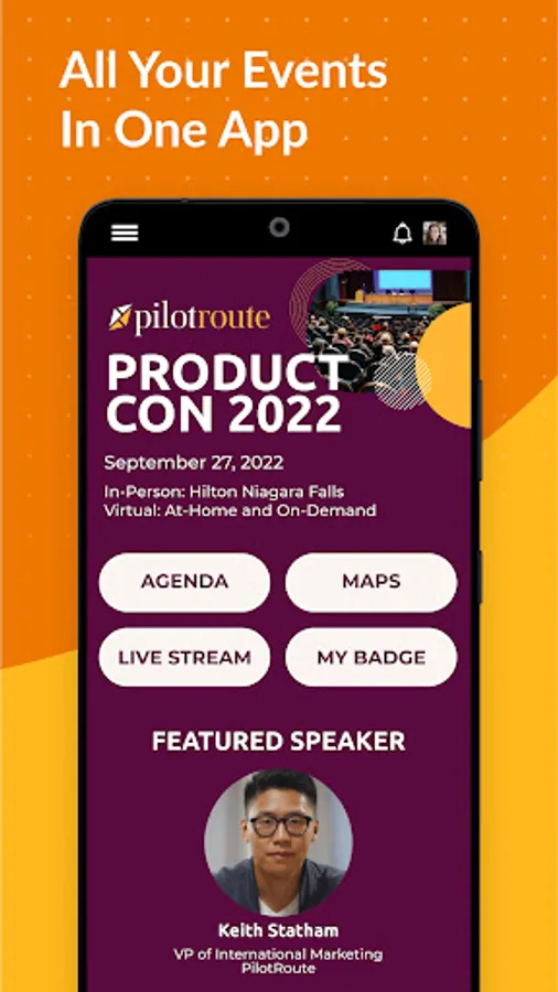 To get started, download the app and enter the unique event code provided by your event organizer.