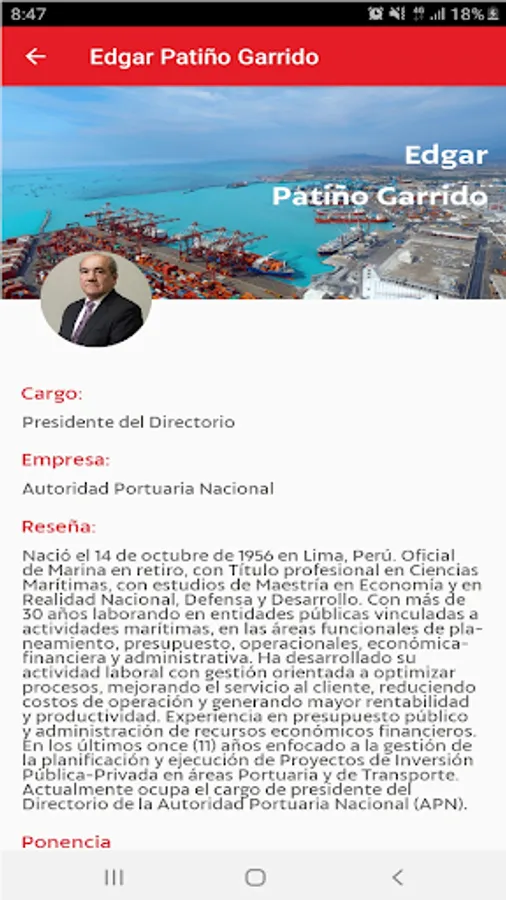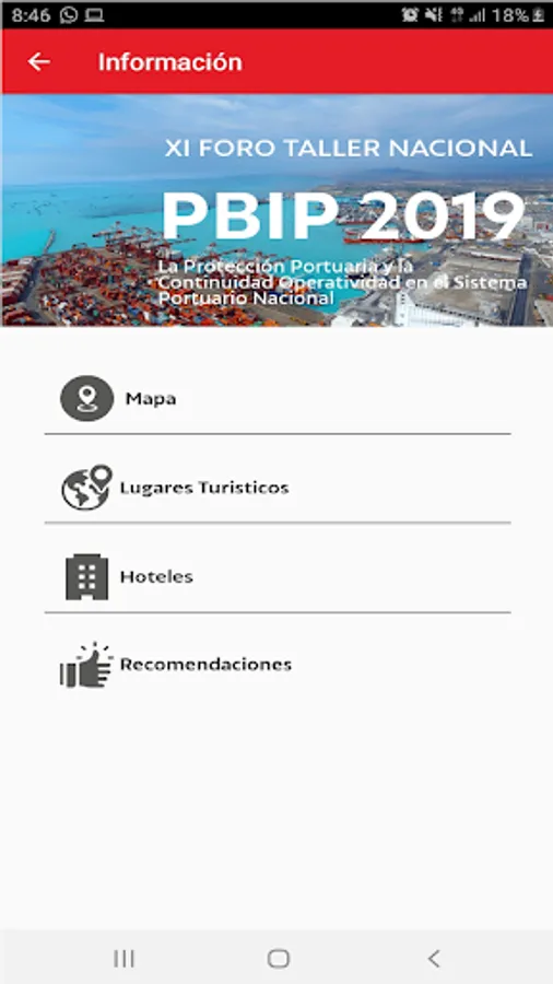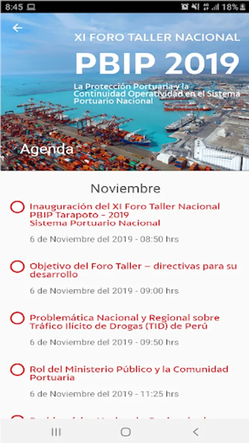 The mobile application of events of the National Port Authority is a computer tool that will allow users to acquire information about the events developed by the APN, through a virtual platform that contains the list of exhibitors, the official agenda of the event, the Online registration and a WhatsApp group. Also, the application has links to download the presentations and photos of the events developed by the institution, in order to provide such information to users.