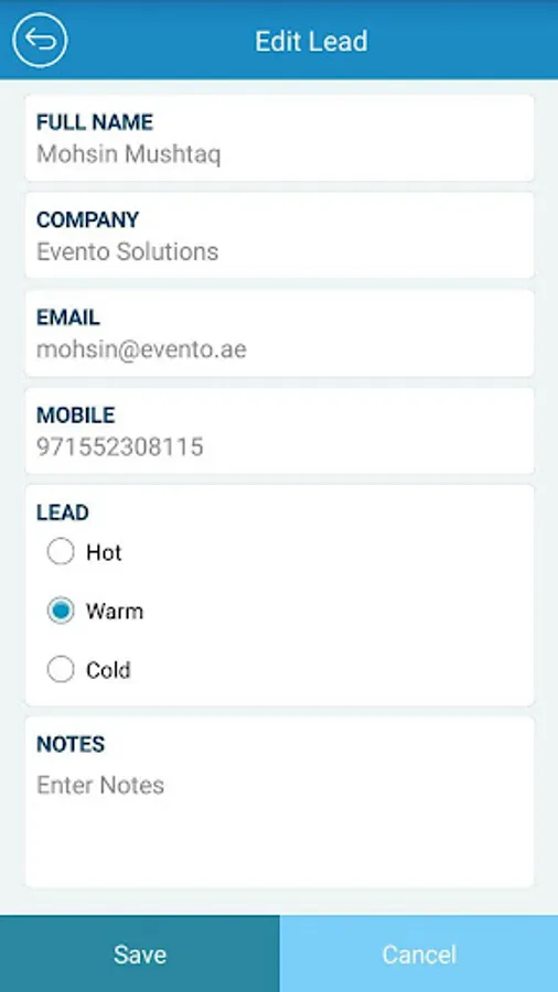 - On capturing a lead, the user can prioritise the lead by assigning a status (Hot, Warm or Cold) according to your own preference