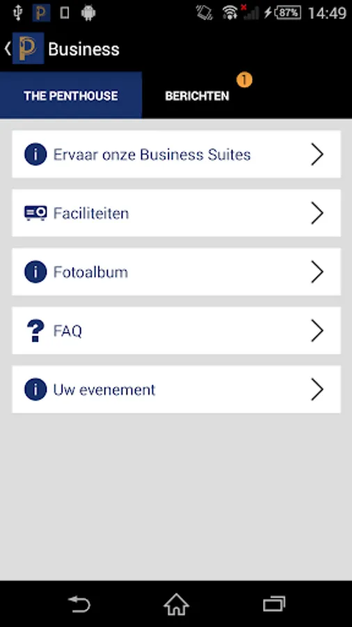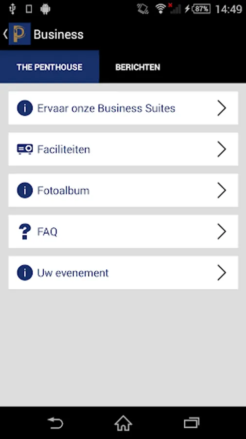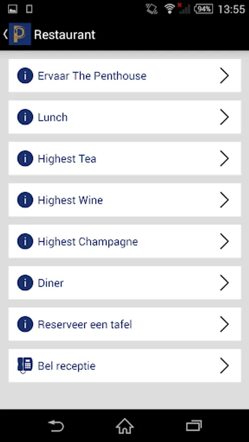 The Penthouse is Holland's highest restaurant at the top of The Hague Tower. Use this application to find out more about the tower and it's facilities. Make reservations for lunch, highest tea, highest wine, highest chamagne or dinner. Enjoy a preview of our delicious menus or see what's on in our event calendar.