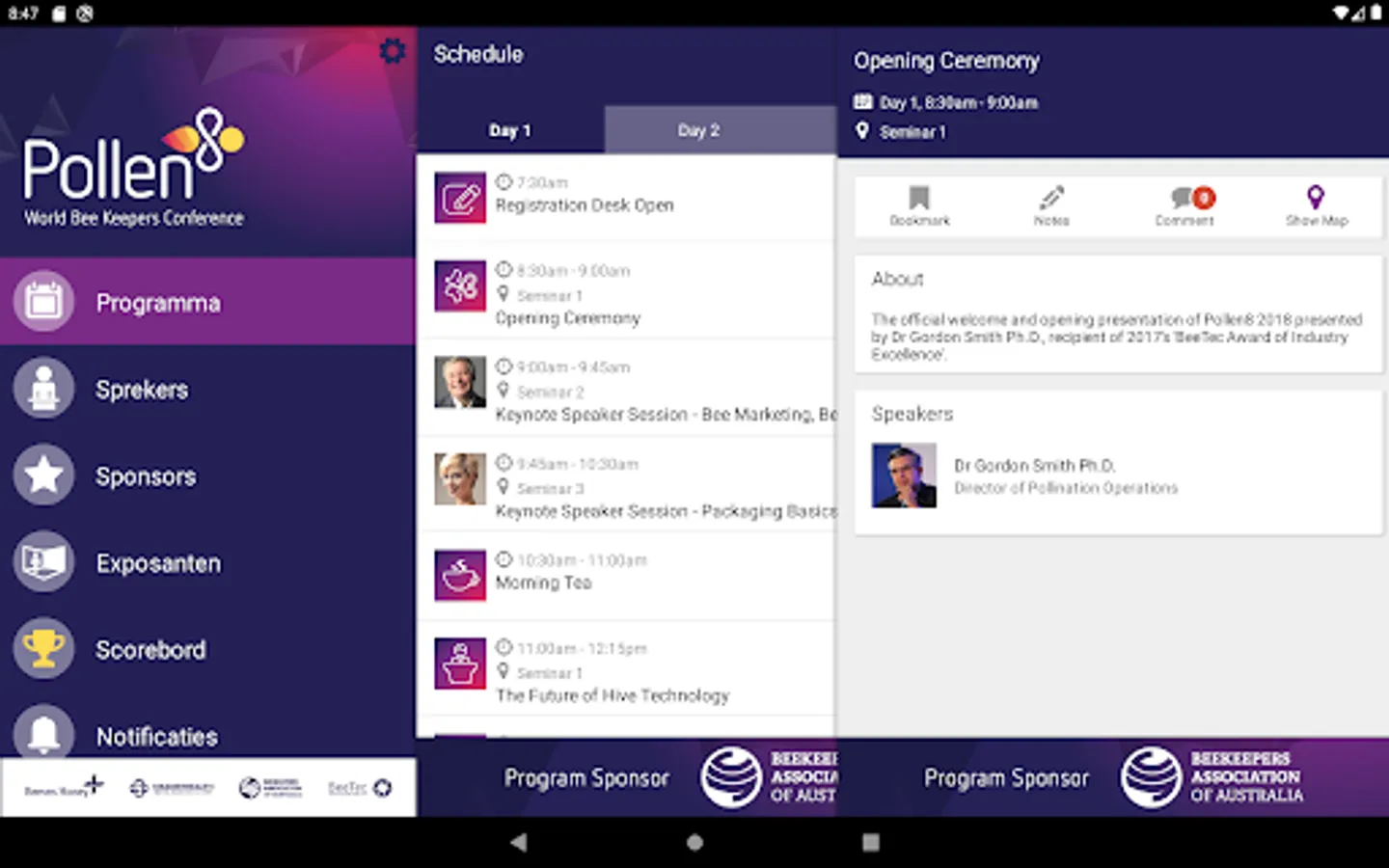 Met de Op locatie! app heb je direct toegang tot alle relevante informatie van jouw evenement. In het digitale programmaboekje vind je een gebruikersvriendelijk overzicht van programma-onderdelen zoals ontvangst, presentaties, workshops, break-out sessies en optredens. Zo weet je eenvoudig wanneer je waar moet zijn. Maar ook (achtergrond)informatie over sprekers, exposanten, sponsors en artiesten is beschkbaar. En natuurlijk kun je zelf meedoen. Post een leuke foto, neem contact op met andere bezoekers of beoordeel inspirerende sprekers.