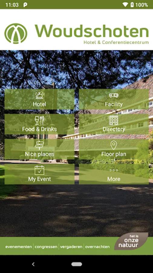 With the Woudschoten app, you have all the information and the latest news from Woudschoten Hotel & Conference Center directly available. In the app you can find information about our location and facilities. On the interactive map you can easily find your room, hotel room or other spaces. If you want a day trip then there are several options in the app with information. Reception can be called with one touch and also your next stay can be directly reserved.