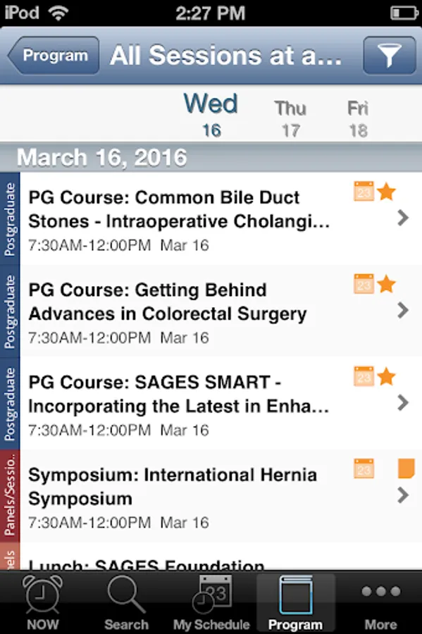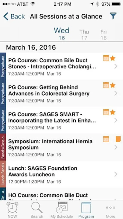 • Program: Browse the entire event program to build your personal schedule, bookmark sessions or speakers, or access session handouts as available.