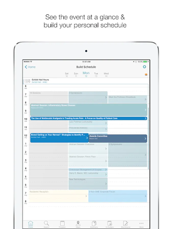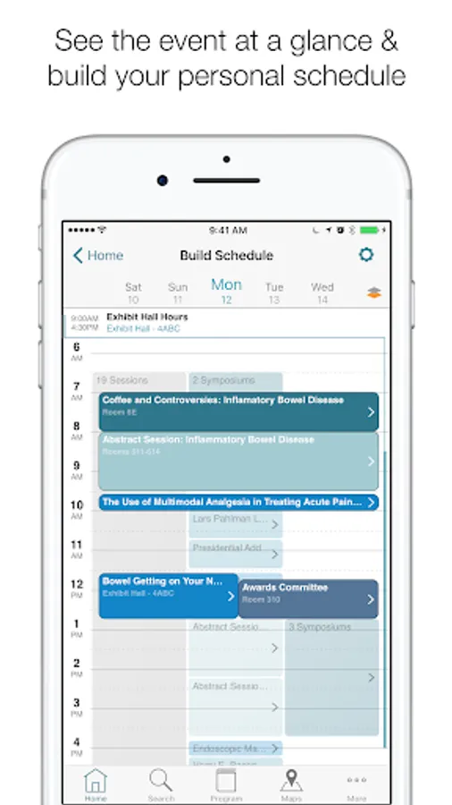 • Program: Browse the entire event program to build your personal schedule, bookmark sessions or speakers, or access session handouts as available.