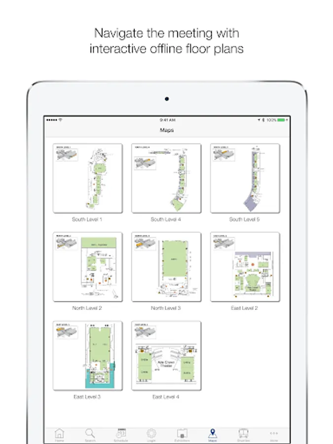 • Native app: No wifi connection required to access the conference program, schedule or animated maps.