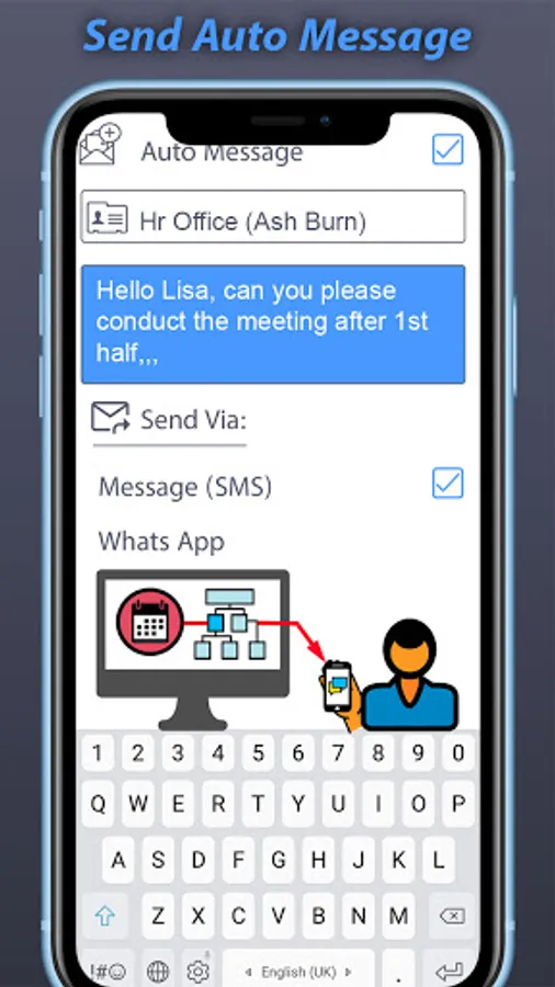 • Can send auto message of reminder to whatsap, skype or default SMS service.