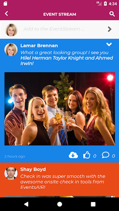 • Network with other attendees with the EventStream Private Social Network, including posting of photos, videos, likes and tags