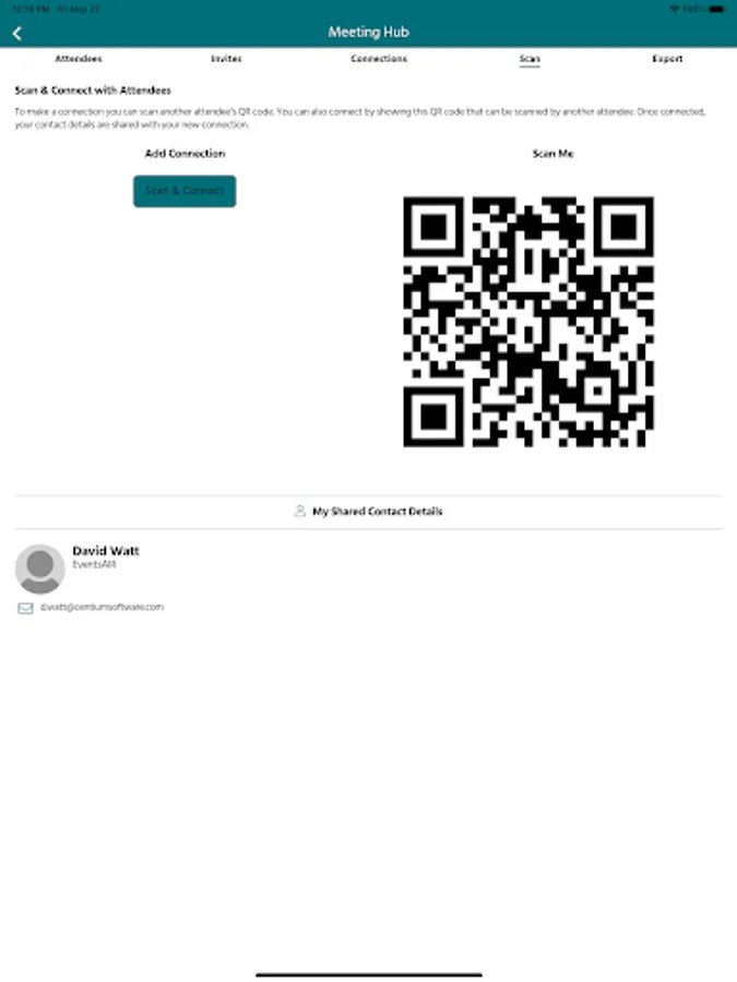 - Contact exchange where delegates, sponsors and exhibitors can scan their QR code in the app and exchange details.