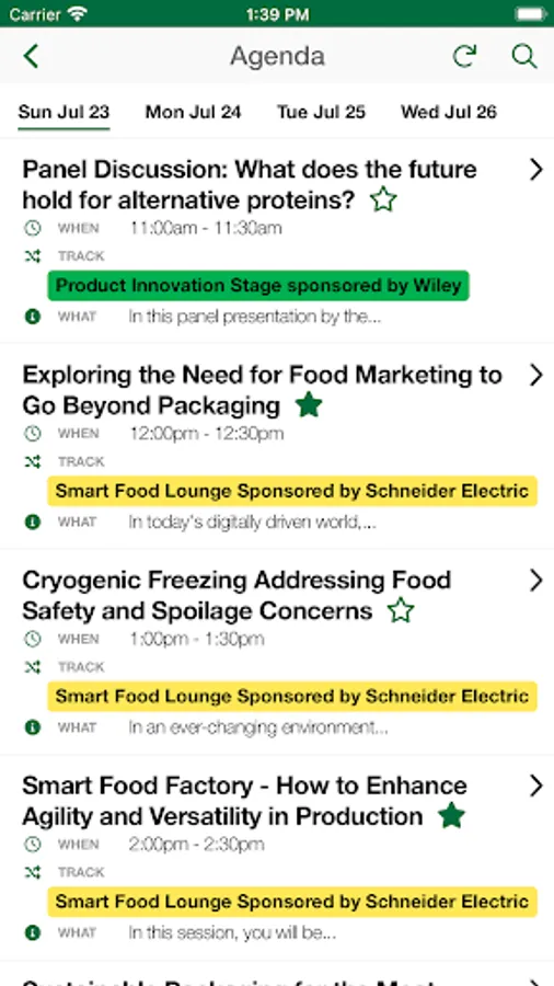 • Favourite sessions and view speaker information