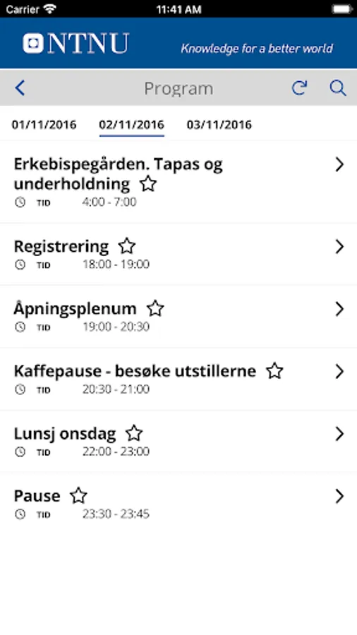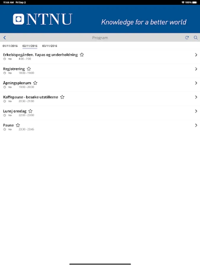 NTNU Conferences App Screenshots