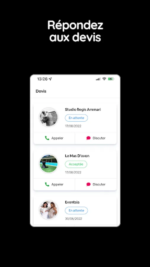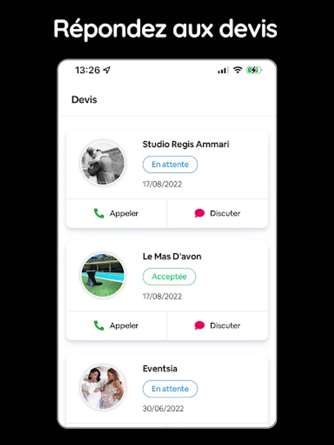 With the application for professionals, you will be informed at all times of the activity on your profile and will be in constant contact with future customers from your phone.