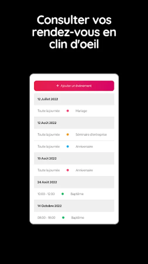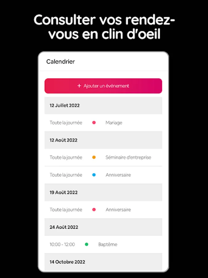 - Calendar & Agenda: follow and manage your appointments from the Eventsia Pro application
