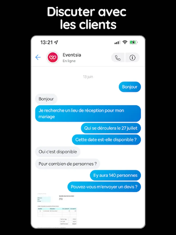 The Eventsia.fr application for professionals that allows you to develop and manage your business.