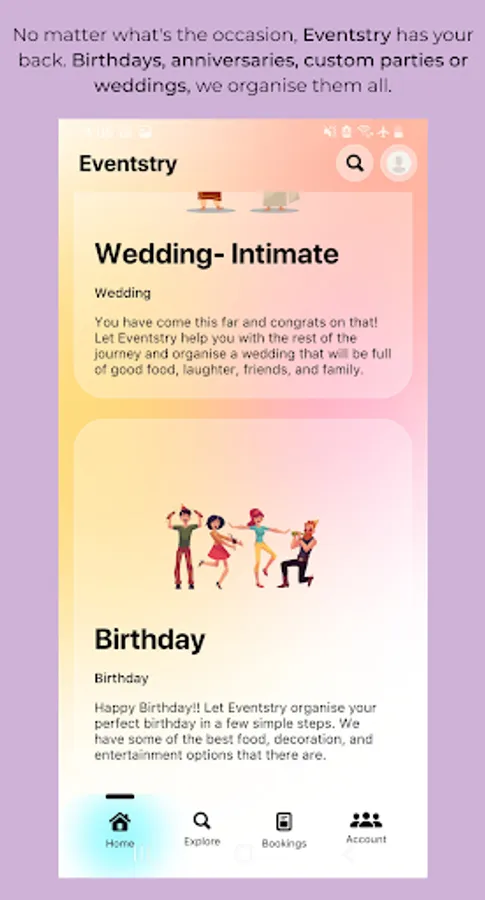 Eventstry is an all-in-one, free-to-use app that transforms the way you organize your events by letting you select, customize, book, and pay for your event. We find the perfect event management companies and vendors through our database propelled by artificial Intelligence-based algorithms, vet them, negotiate prices and oversee the entire process while they execute the event. Eventstry streamlines events by heavily focusing on integrating state-of-the-art technologies in the events.