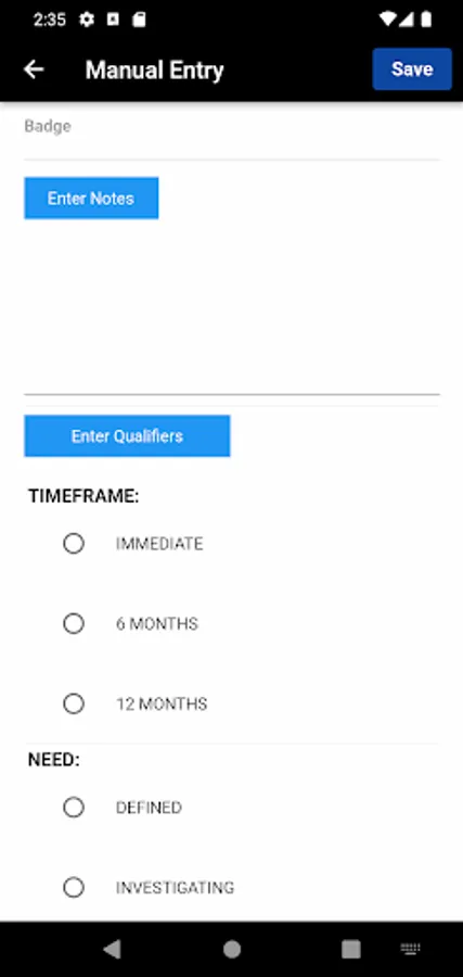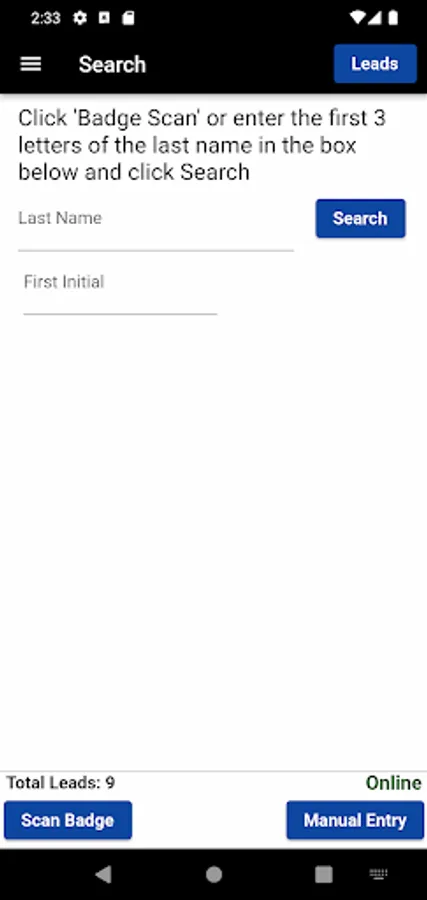 Capture sales leads by entering a Badge ID, scanning a QR code, scanning the text on the badge (OCR), or if there is no badge, simply type in 3 letters of the attendees last name and first initial. So simple.