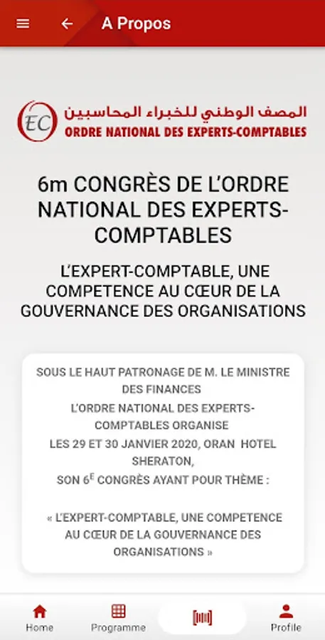 Under the high patronage of the Minister of Finance, the National Council of the National Order of Chartered Accountants, is organizing its 6th Congress, on January 29 and 30, 2020 at the Sheraton hotel, Oran