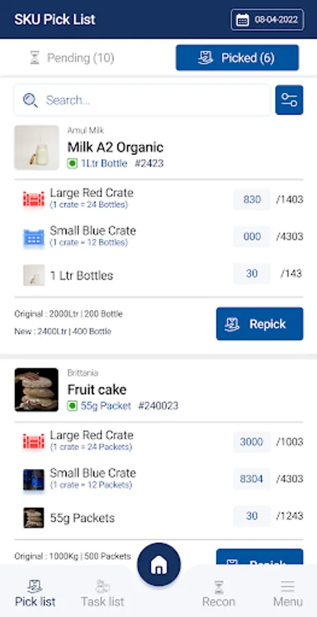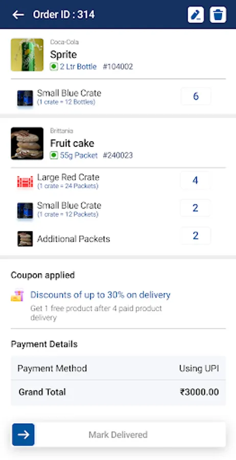 Picking and Delivery Management- This shows what items needs to be picked up by the delivery executive from the warehouse and once they have picked the respective SKUs, where these SKUs has to be delivered a