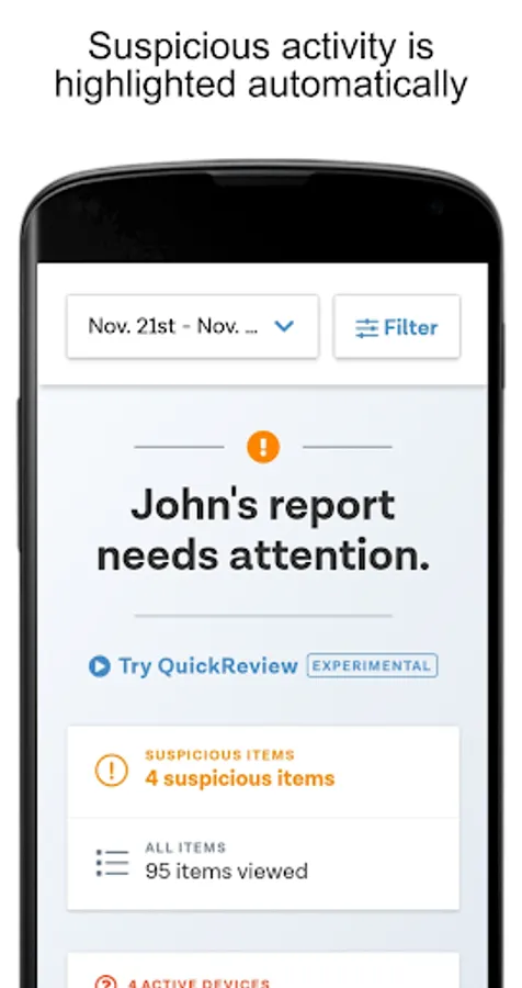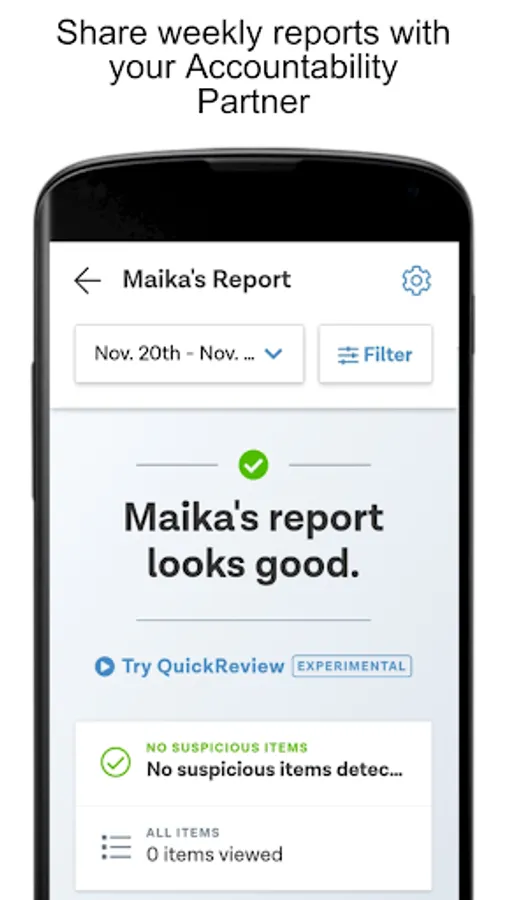 ● Report contains a button for your accountability partner to “Check In” when if they see something concerning
