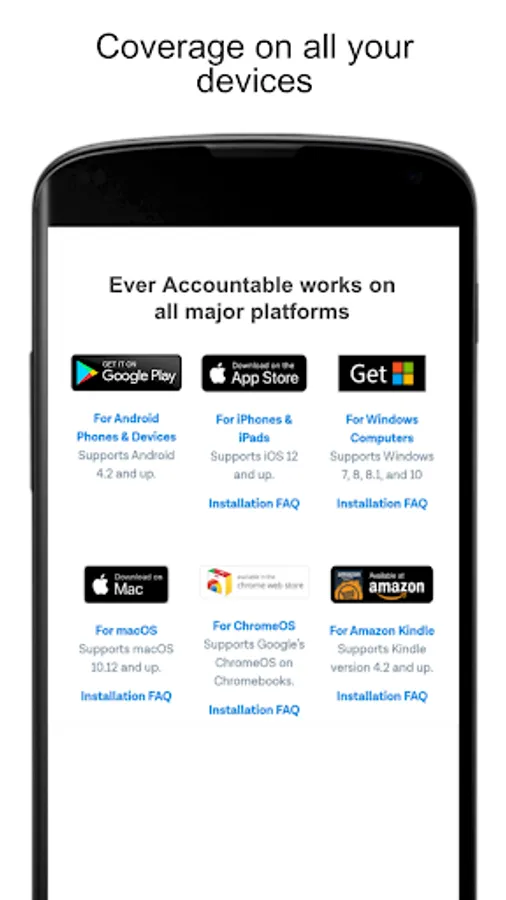 ● Strong privacy and security. Ever Accountable is the ONLY accountability app that has obtained ISO 27000 and 27001 security and privacy certifications