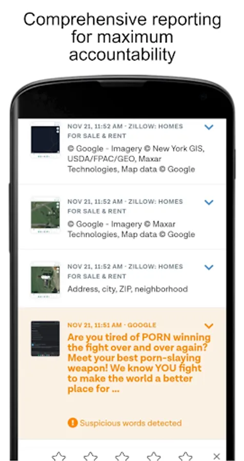 ● Easy to read reports so your accountability partner can quickly see what you looked at. Any pornographic material is flagged at the top of the report