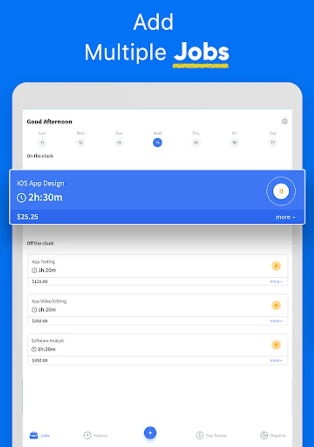 • Flexible work hours tracker; time calculator for single or multiple jobs