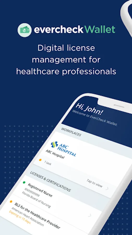 EverCheck Wallet was designed for busy healthcare professionals who need a simple way to manage their licenses, certifications, and registrations.