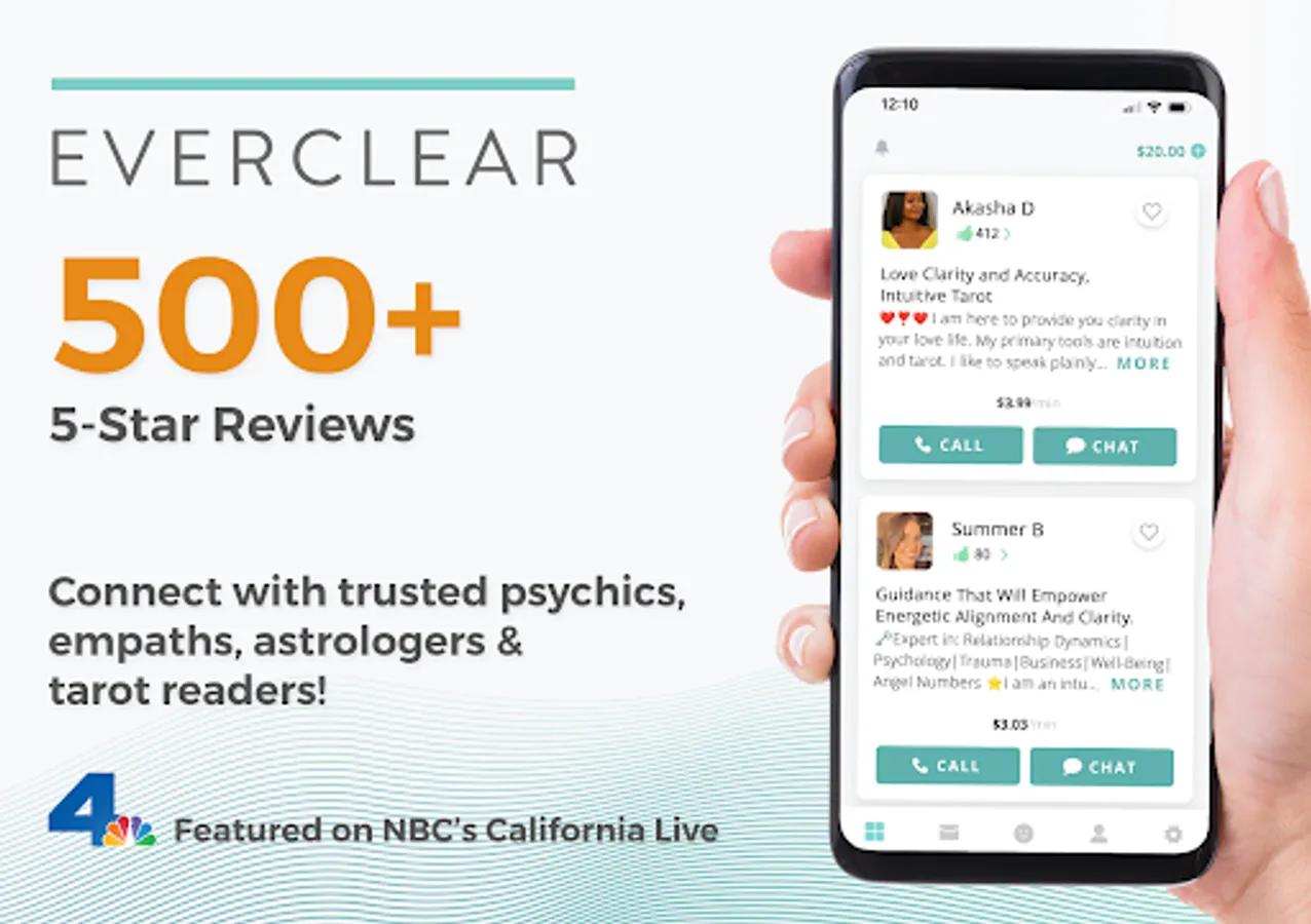 Daily live Spiritual guidance and empaths at the palm of your hand: Everclear offers you 1-on-1 psychic advice from a personal spiritual guide.
