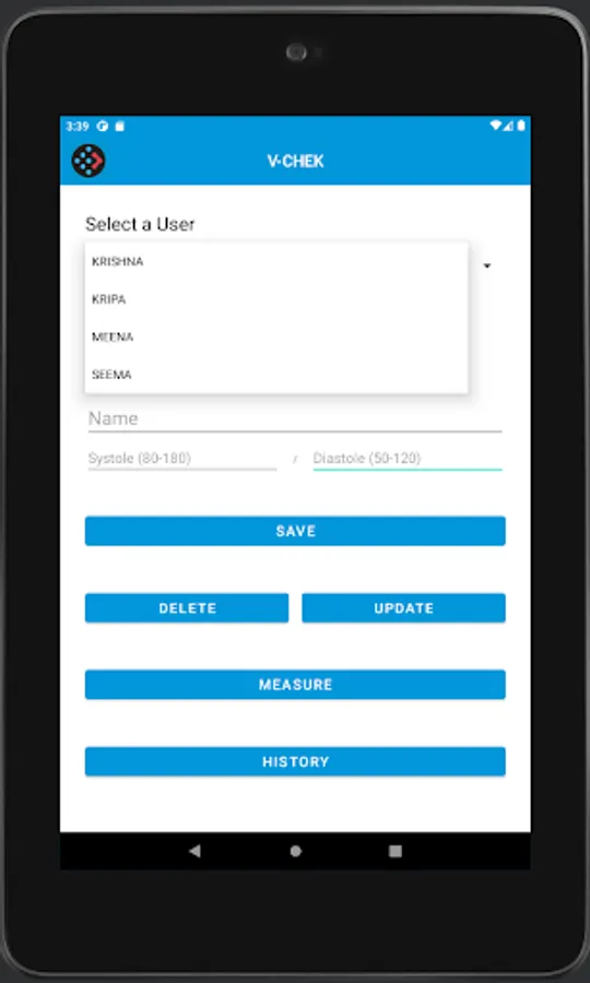 V-CHEK is an app which is used to connect to V-CHEK device(Hardware device) through Bluetooth. App collects Health data from the V-CHEK device and stores locally.