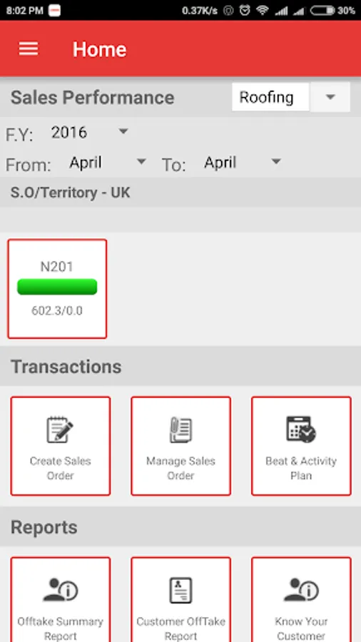 The app include sales order creation, visit management, Sales Analysis & reports and Location of the customers.