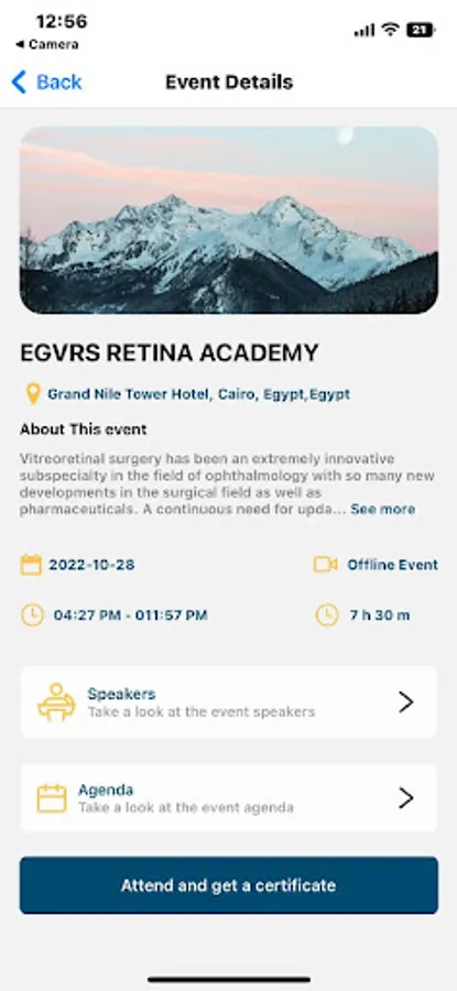 Egyptian Vitreoretinal Society (EGVRS Retina Academy), is considered to be the most prominent vitreoretinal society in the Middle East, app made to help HCP specialists to guide them throughout the event. Agenda, event details, speakers list and engagement features for the Ophthalmologists to participate and vote during sessions.
