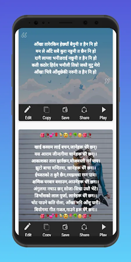 This app provides a large collection of Nepali status and quotes for different categories like heart touching status, love status, sad status, attitude status, birthday wishes in Nepali, quotes for a smile, funny status, captions about life, etc.