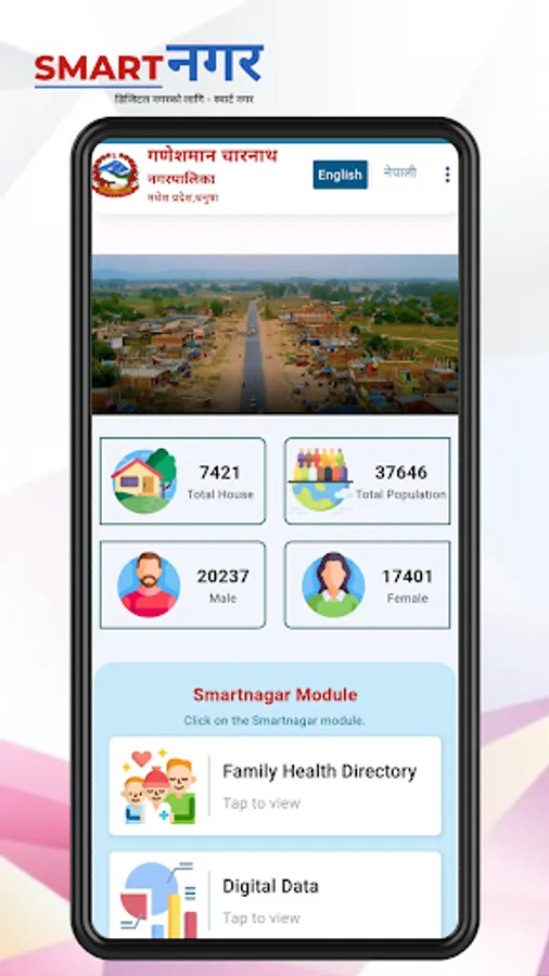 Ganeshman Municipality is a project designed to digitalize the municipality using the latest technology. This is a project that connects the local government with the public. Smart Nagar is an integrated system that comprises of a mobile application, website, digital data and a dashboard for the local representatives. One of the most interesting features of the software is that it provides most ward level and municipality level services online.
