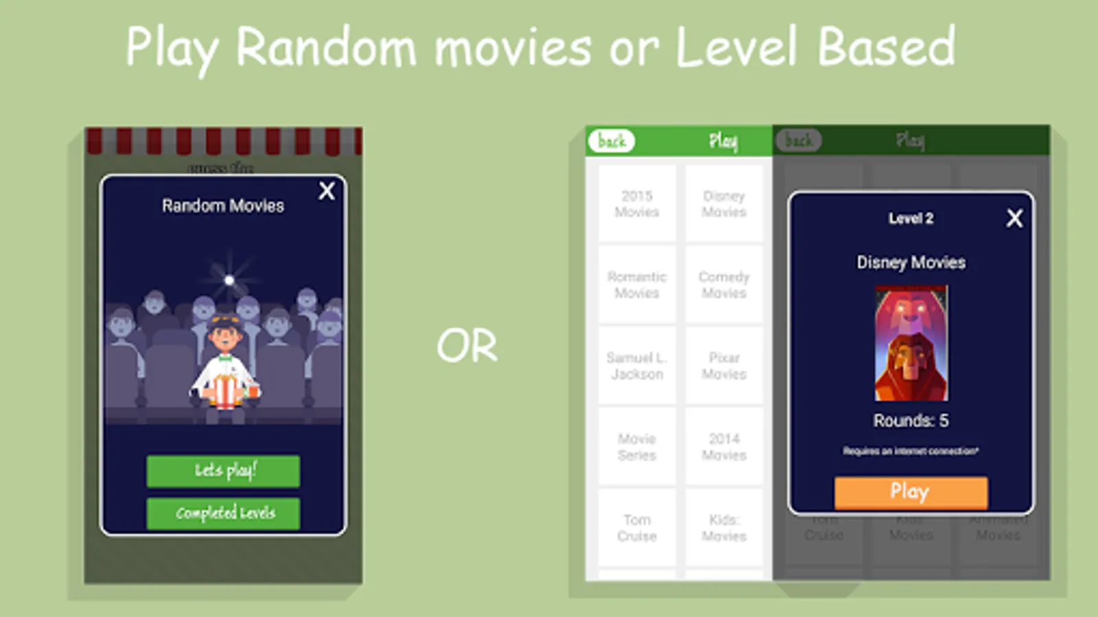 Plus a new Level Based game is now available! near 30 levels of category based movies!