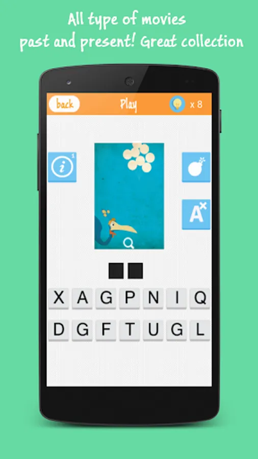 Guess the Movies! is amazing and addictive guessing game! See the image and guess the movie! Test yourself if you remember your favorite movie through image posters! Count how many movies have you seen!
