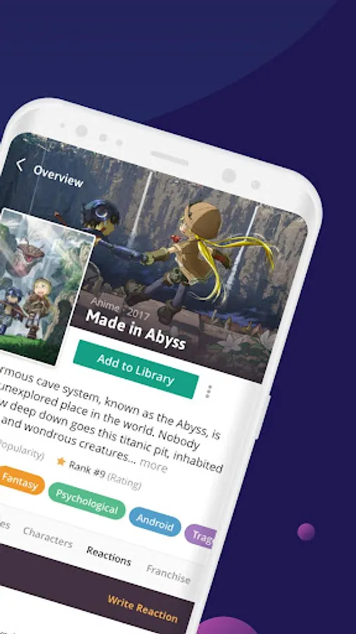Find new and interesting anime by browsing your favorite categories and streaming platforms. Discuss episodes you’ve watched, and keep track of what you’ve seen.