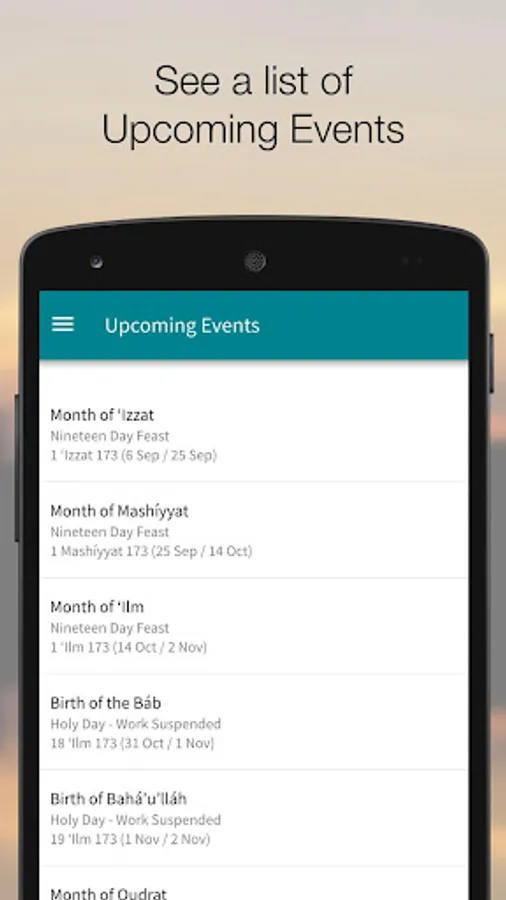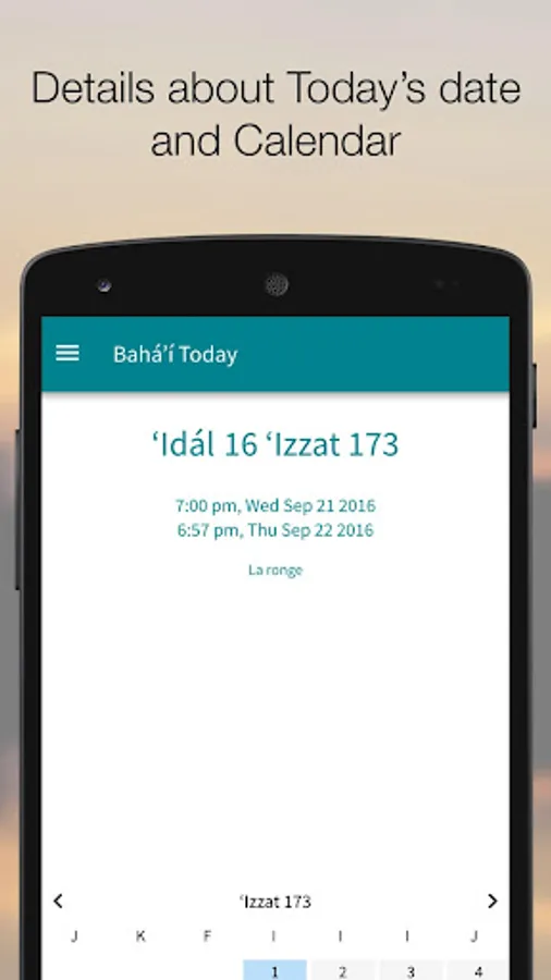 This app was developed to help transition our daily lives and conception of date/time from the Western Gregorian calendar to the Badi Calendar.