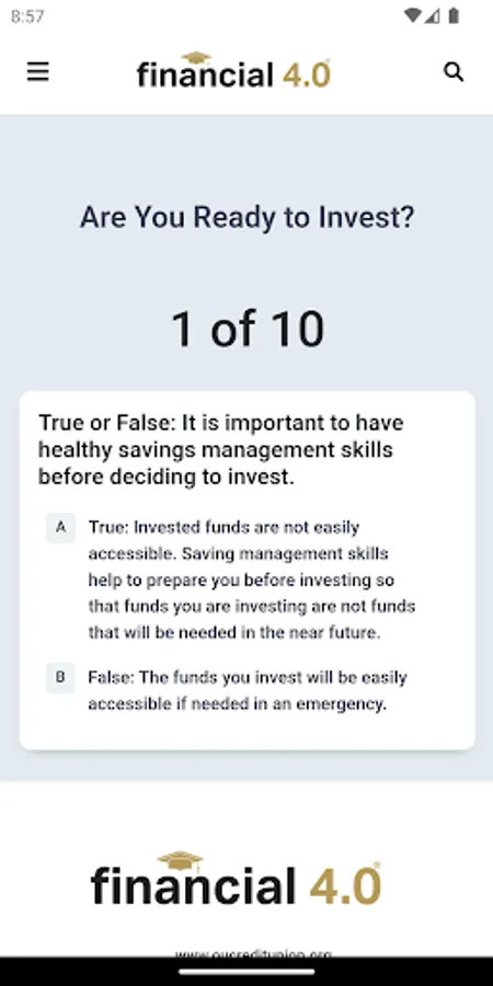 Financial 4.0 is a free financial resource designed to help college students discover how to build and secure their financial future. Download the app to learn financial tips to build good credit, budget wisely, protect your money from fraud and scams, have basic investment knowledge, and more.