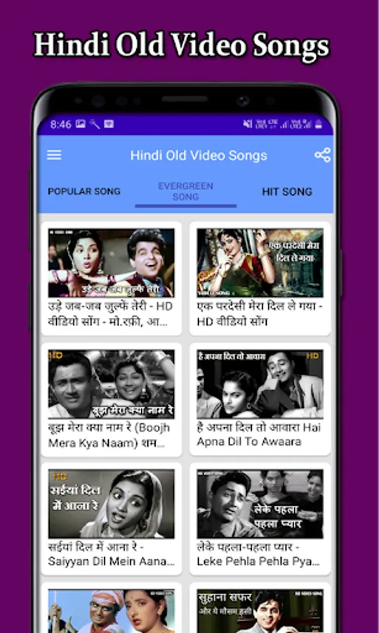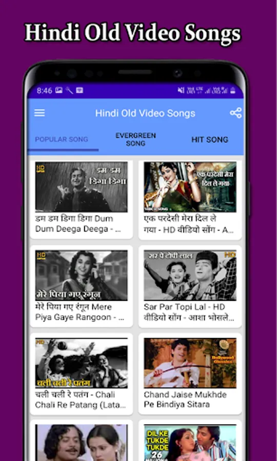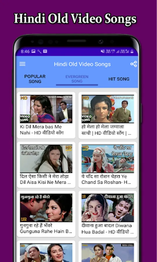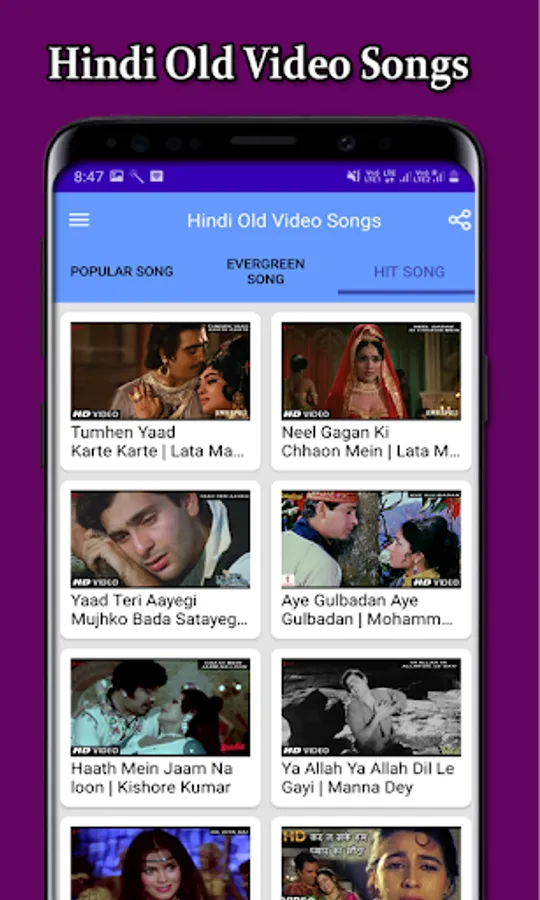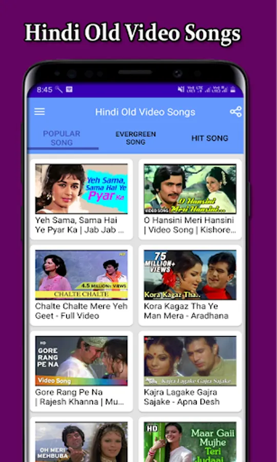 This application has largest collection all category videos like Best of Dharmendra, Best of Hema Malini Songs, Best of Shammi Kapoor, Best of Amitabh Bachchan, Best of Dilip Kumar, Rajesh Khanna Hit Songs, Sanjeev Kumar Best Songs, Raj Kumar Super Hit Songs, Dev Anand Evergreen Songs, Rishi Kappor Best Songs, Ashok Kumar Hits, Jeetendra Super Hit Video Songs, Vinod Khanna Songs, Nargis Best Video Songs, Madhubala Hit Songs, Vyjayanthimala Old Songs, Meena Kumari Evergreen Songs, Nutan Hits Songs, Rekha Hits Video, Aasha Parekh Best Songs, Mumtaz Best Songs and many more.