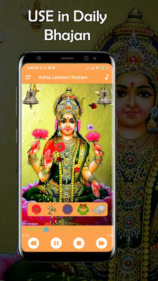 The content listed in this Ashta Lakshmi stotram App is hosted in public domain. We do not upload any audio or videos to any websites or modify content.