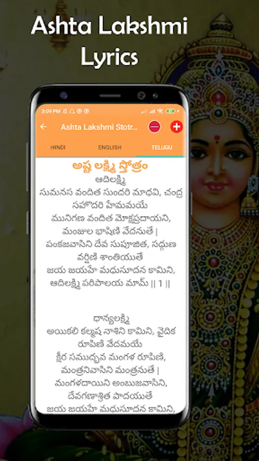 * The app consists of the audio song of Ashta Lakshmi stotram along with Telugu.
