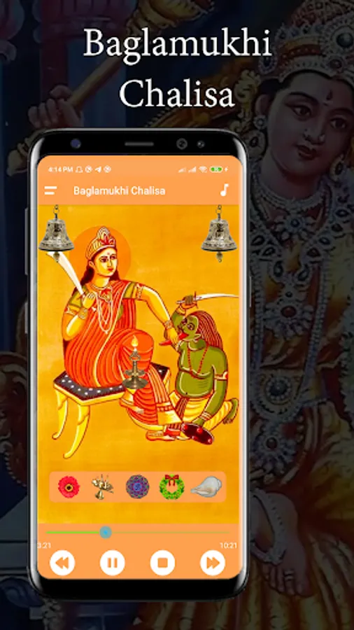 Bagalamukhi is one of the ten mahavidyas (great wisdom goddesses) in Hinduism. Bagalamukhi Devi smashes the devotee's misconceptions and delusions (or the devotee's enemies) with her cudgel. She is also known as PitambaraMaa.
