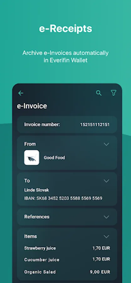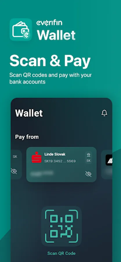 Account-to-account payments in your store with EU-wide coverage. Connect your bank accounts, scan the QR code and pay cashless. Everifin wallet is your safe alternative to cash or card.