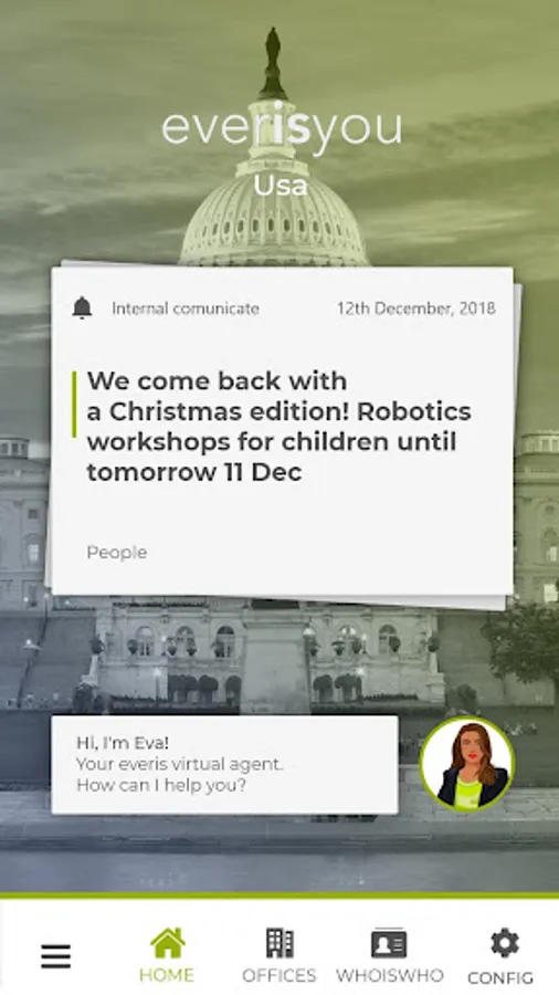 - Talk to the virtual agent EVA and clarify all your doubts about the company.