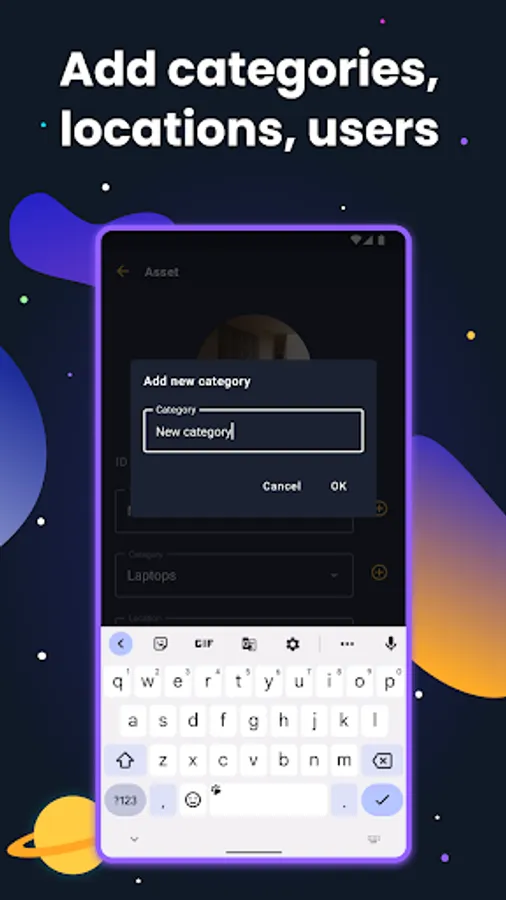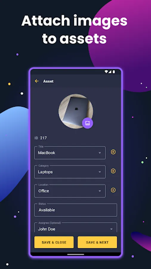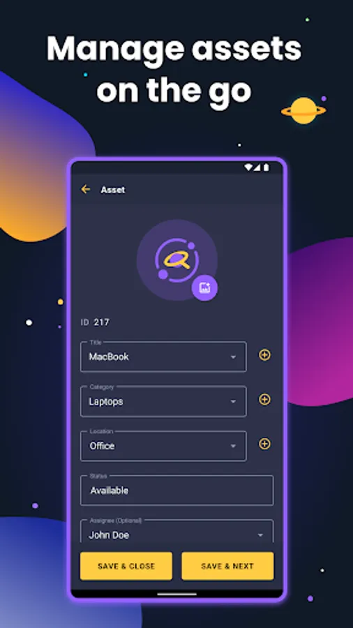 The mobile app is designed as a helping tool for the primary web system. Use it to scan QR codes and keep your assets on track in both digital and physical worlds.