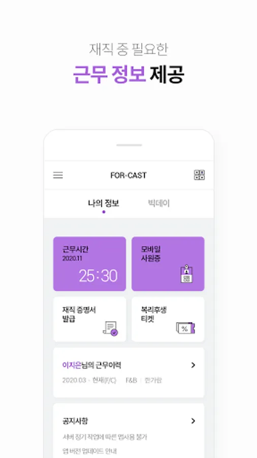 -Mobile employee ID, working hours inquiry, salary inquiry, work history inquiry, statement issuance